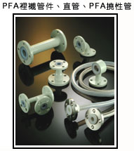 直管 45度彎頭 90度彎頭 同徑三通 異徑三通 同心異徑接頭 偏心異徑接頭 4通 盲法蘭 儀表接頭 法蘭墊片 法蘭墊片 2 法蘭墊片 3 PFA裡襯視窗 PFA撓性管 PFA直管